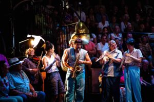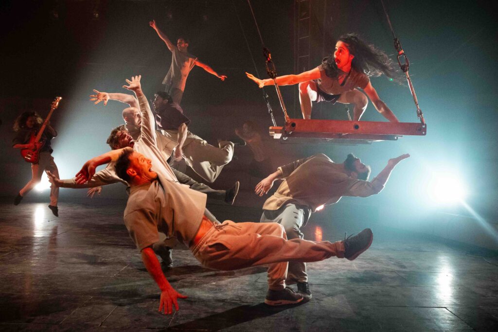 Après Dans ton coeur, mis en scène par Pierre Guillois, la compagnie Akoreacro propose une nouvelle création sous chapiteau en collaboration avec Alexandre Markoff. Avec Ostinato, c’est toute l’histoire de l’humanité que la Compagnie croque en 70 minutes. Des premiers élans préhistoriques jusqu’au rêve de voyage sur Mars, OSTINATO ne vous cachera rien des errances de notre espèce, incarnée par 13 Acrobates qui traversent les millénaires avec un panache aussi drôle que virtuose.